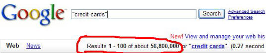 Google for the keyword phrase "credit cards". That's over 56 million