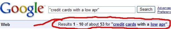 on Google for the keyword phrase "credit cards with a low apr" when